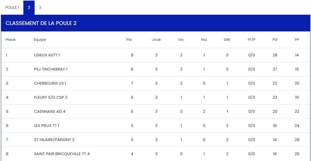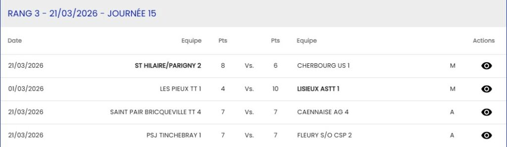 Championnat FFTT – Equipe 2 – Régionale 2