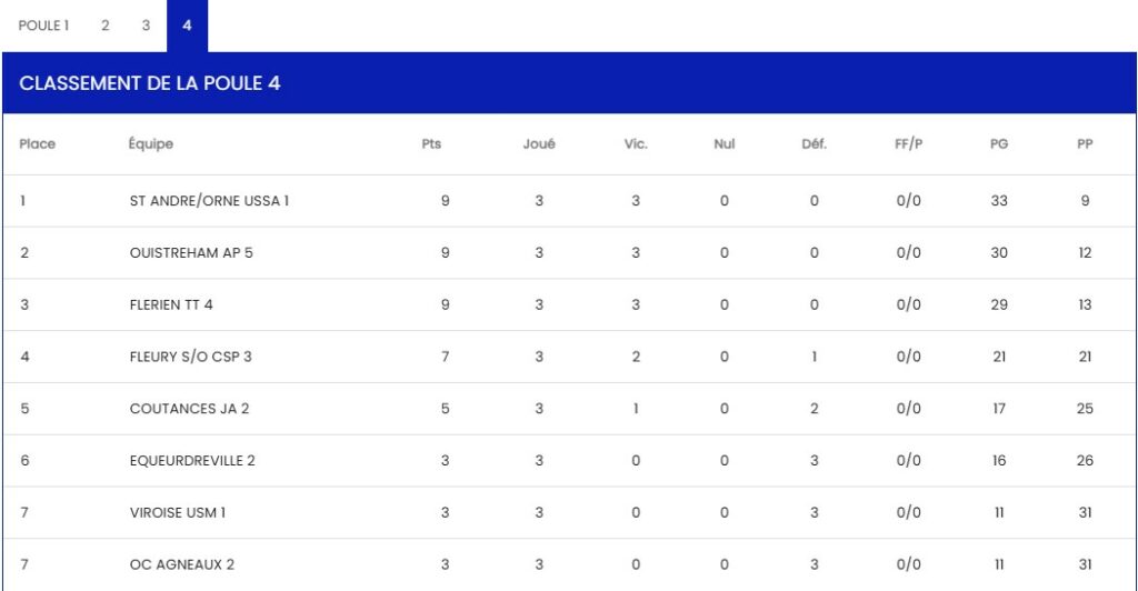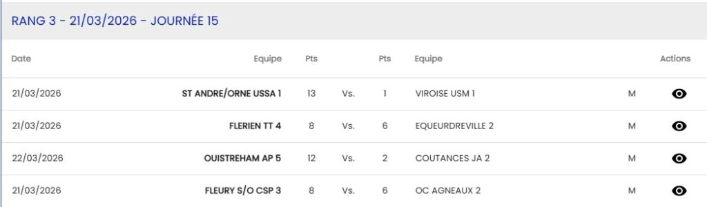 Championnat FFTT – Equipe 3 – Régionale 3
